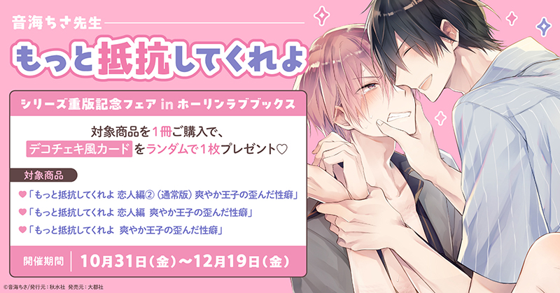 音海ちさ先生『もっと抵抗してくれよ』シリーズ重版記念フェア in ホーリンラブブックス